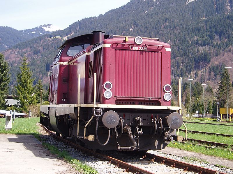 Ein Bauzug der Firma Spendo mit BR V100 2335 am 01.05.2006 in Oberstdorf