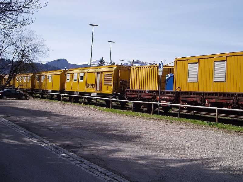 Ein Bauzug der Firma Spendo mit BR V100 2335 am 01.05.2006 in Oberstdorf